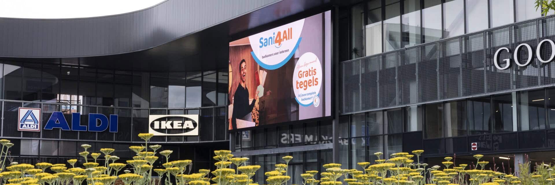 - diverse informatieve led-schermen op het plein waarop advertentieruimte voor de gevestigde winkelketens en externe bedrijven beschikbaar is.